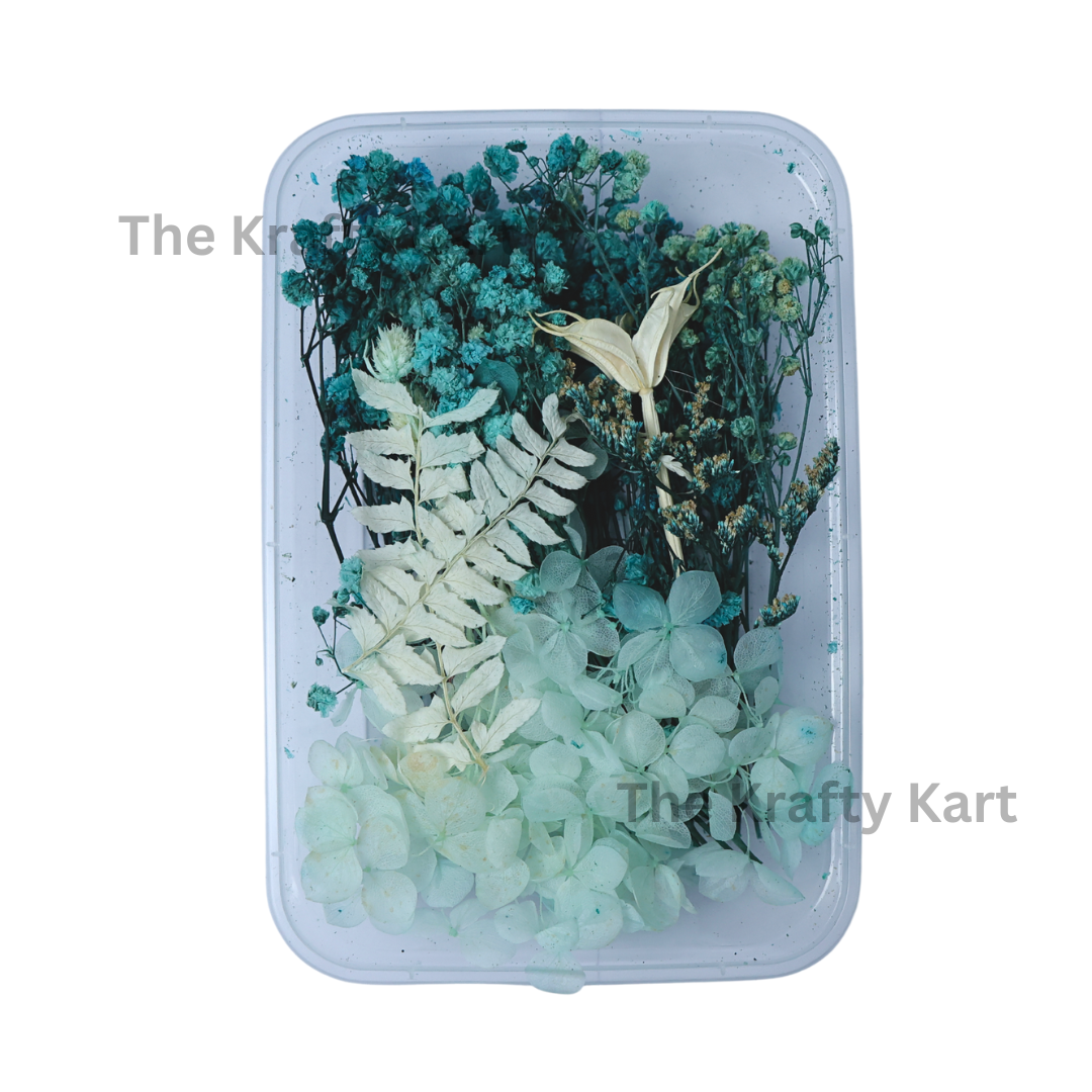 Our Dry Flower Box is filled with a beautiful mix of preserved flowers, perfect for your resin art projects. These flowers are carefully dried to keep their colors and shapes, so you can use them in jewelry, coasters, keychains, and other creative pieces. Each box has a variety of flowers in different colors and sizes, giving you plenty of options for your designs.